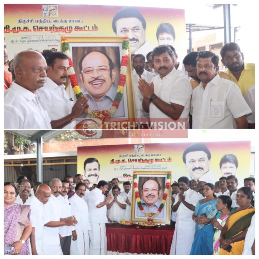 முன்னாள் மத்திய அமைச்சர் முரசொலி மாறனின் 21 ஆம் ஆண்டு நினைவு நாளை முன்னிட்டு தில்லைநகரில் உள்ள திமுக மாவட்ட அலுவலகத்தில் கழக முதன்மைச் செயலாளரும் நகராட்சி நிருவாகத்துறை அமைச்சருமான கே.என்.நேரு தலைமையில் பெரம்பலூர் நாடாளுமன்ற உறுப்பினர் அருண் நேரு மற்றும் திமுகவினர் முரசொலி மாறனின் திருவுருவப்படத்திற்கு மாலை அணிவித்து மலர் தூவி மரியாதை செலுத்தினர்.