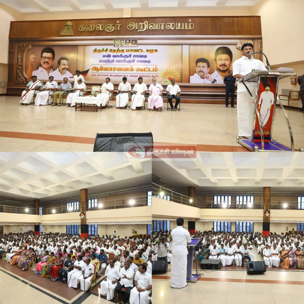 “என் வாக்குச்சாவடி வெற்றி வாக்குச்சாவடி” ஆலோசனை கூட்டம் திருச்சி “கலைஞர் அறிவாலயத்தில்” நடைபெற்றது .