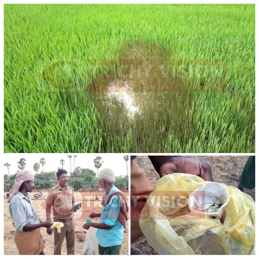 தொடர்ந்து விவசாய பணிகளை கவனித்து வந்த விவசாயிகள் பார்வையிட்ட போது நாற்றங்காலில் விஷத்தன்மை வாய்ந்த ஆசிட் மற்றும் பவுடர்களை தெளித்ததால் நாற்றங்கால் ஒரு பகுதி கருகிய நிலையில் உள்ளதை கண்ட விவசாயிகள் போலீசாருக்கும், வருவாய் துறையினருக்கும் தகவல் தெரிவித்தனர். இதனையடுத்து சம்பவ இடத்திற்கு வந்த திருவரம்பூர் போலீசார் மற்றும் வருவாய் துறையினர் வயலில் பார்வையிட்டு விசாரணை நடத்தினர்.