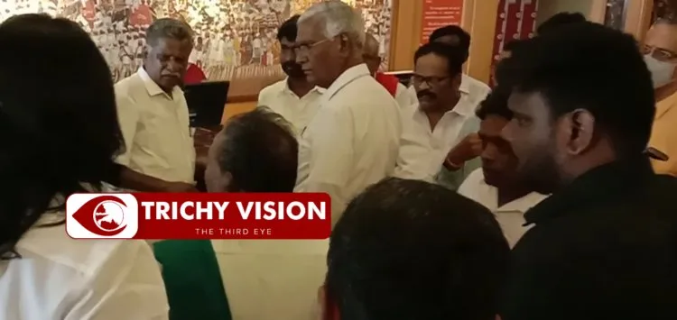 இந்திய கம்யூனிஸ்ட் கட்சி நேற்று திமுகவுடன் தேர்தல் தொகுதி பங்கீடு முடிவடைந்து இன்று மாநில நிர்வாக குழு கூட்டம் திருச்சியில் நடைபெற்றது. இந்நிலையில் தேசிய பொதுச் செயலாளர் ராஜா தங்கியிருந்த அறையில் மர்ம நபர் உள்ளே புகுந்து அமர்ந்திருந்தது அவர்களுக்கு மேலும் அதிர்ச்சியை ஏற்படுத்தி உள்ளது.