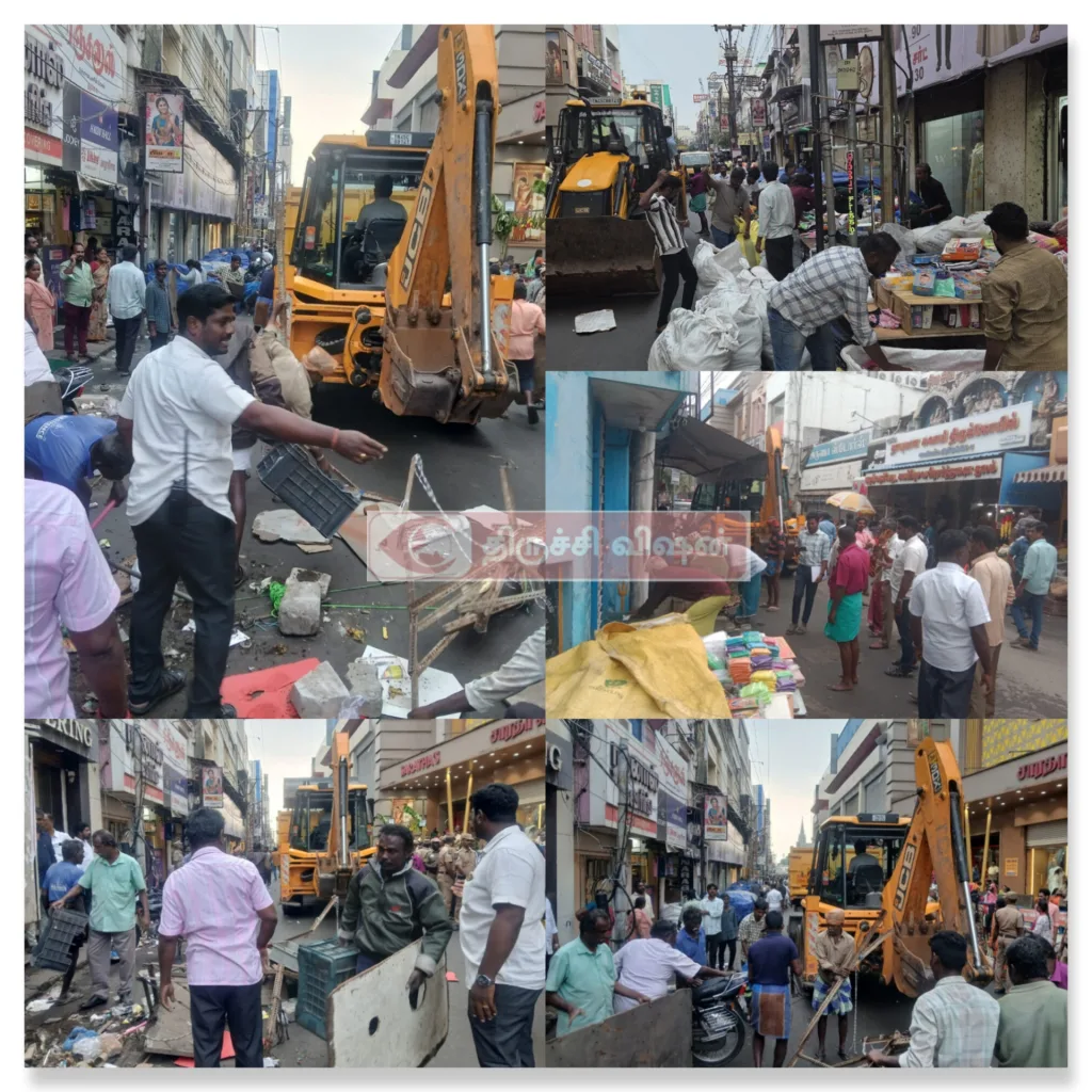 திருச்சிராப்பள்ளி மாநகராட்சி மண்டலம் 1 கோட்டத்திற்கு உட்பட்ட என் எஸ் பி ரோடு பகுதிகளில் மலைக்கோட்டை அருள்மிகு தாயுமானவர் சன்னதி முதல் தெப்பக்குளம் வரை சென்னை உயர்நீதிமன்ற மதுரை கிளையில் உத்தரவு படியும் திருச்சிராப்பள்ளி மாநகராட்சி நகர விற்பனை குழு கலந்தாலோசனை கூட்டம் 10.12.2025