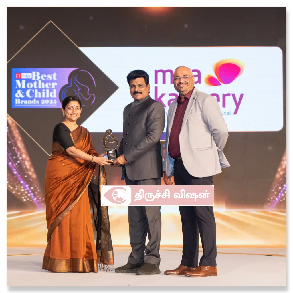சிறந்த மற்றும் நேர்மையான மருத்துவ சேவை, தாய்மார்கள் குழந்தைகளின் பாதுகாப்பில் முழு அர்ப்பணிப்பு ஆகியவற்றைப் பாராட்டி, 2025- ஆம் ஆண்டின் சிறந்த தாய்-சேய் நல பிராண்டு’ என்ற தேசிய அளவிலான விருதை எகனாமிக் டைம்ஸ் நிறுவனம் திருச்சி மா காவேரி நிறுவனத்துக்கு வழங்கியுள்ளது.