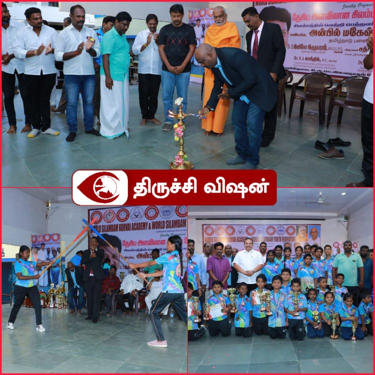 திருச்சி தில்லைநகர் கி.ஆ.பெ. விசுவநாதம் பள்ளியில் இந்திய சிலம்ப கோர்வை மற்றும் உலக இளையோர் சிலம்ப சம்மேளனம் இணைந்து நடத்திய தேசிய அளவிலான சிலம்ப போட்டி நடைபெற்றது இதில் 360 க்கும் மேற்பட்ட சிலம்ப விளையாட்டு வீரர்கள் பங்கு பெற்றனர்
