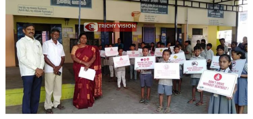 திருச்சி தென்னூர் நடுநிலைப்பள்ளியில் சாலை பயனீட்டாளர் நல அறக்கட்டளை சார்பில் மாணவர், மாணவிகளுக்கு சாலை பாதுகாப்பு உயிர் பாதுகாப்பு விழிப்புணர்வு நிகழ்ச்சி பள்ளி வளாகத்தில் நடைபெற்றது. பள்ளி தலைமை ஆசிரியர் விமலா வரவேற்றார். சிறப்பு விருந்தினர் அமிர்தம் சமூக சேவை அறக்கட்டளை நிர்வாக அறங்காவலர் யோகா ஆசிரியர் விஜயகுமார் சாலை பாதுகாப்பு குறித்து துவக்க உரையாற்றினார்.