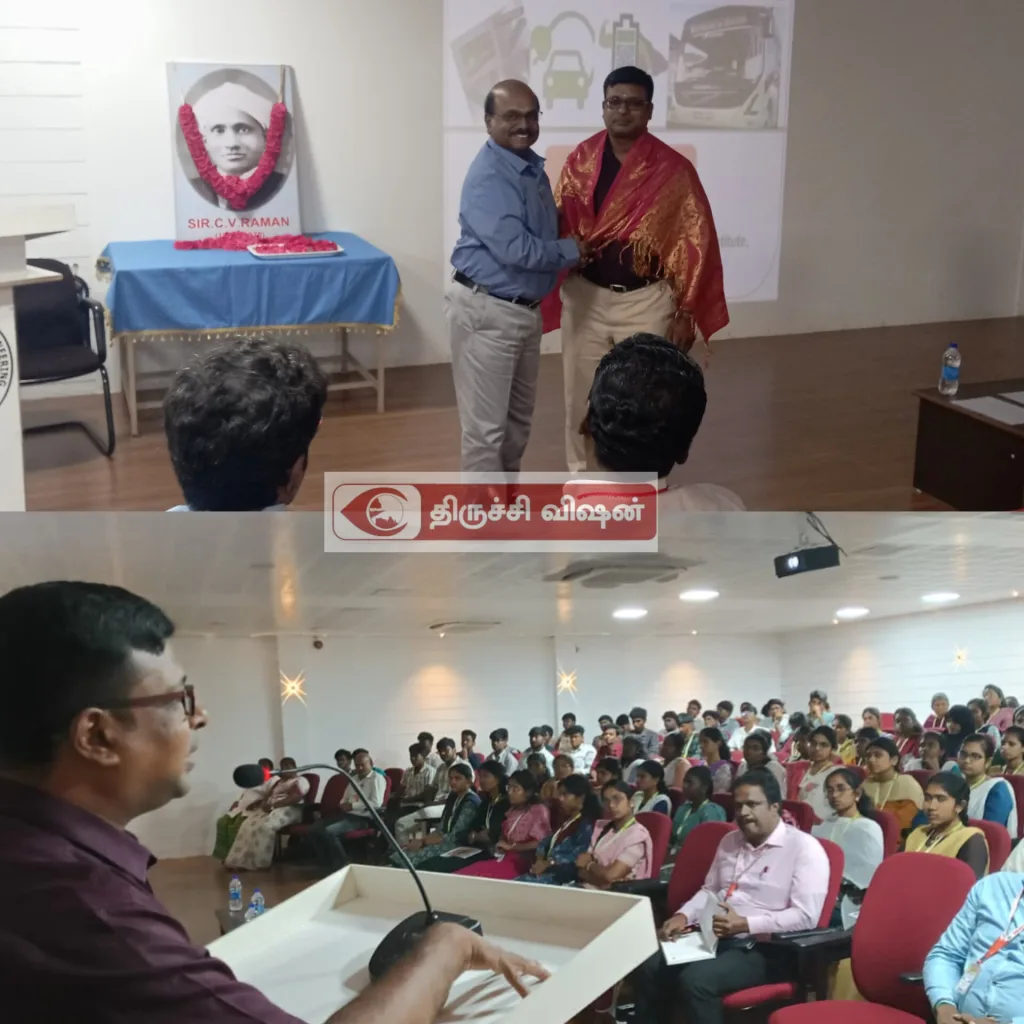 அறிவியல் மற்றும் மனிதவியல் துறை சார்பில் “Science and Technology for Sustainable Development” என்ற தலைப்பில் 27-02-2026 அன்று தேசிய அறிவியல் தினத்தையொட்டி ஒரு நிகழ்ச்சி ஏற்பாடு செய்யப்பட்டது. Dr. S. Sudhakar, Scientist F, Central Electrochemical Research Institute (CECRI) அவர்கள் கலந்துகொண்டார்.