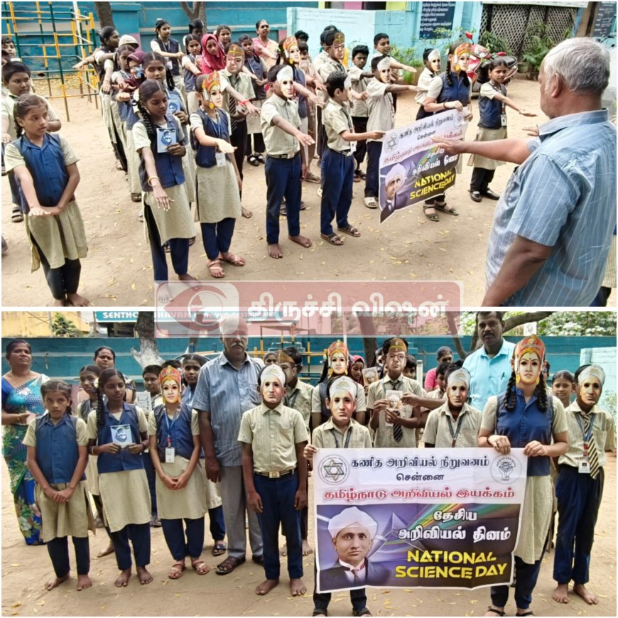 மாணவர்கள் சர் சி வி ராமன் முகமூடி அணிந்து தேசிய அறிவியல் தின உறுதிமொழி எடுத்துக் கொண்டனர்.காஞ்சிபுரம் மாவட்ட ஆசிரியர் கல்வி மற்றும் பயிற்சி நிறுவனத்தின் முன்னாள் முதல்வர் எஸ். சிவகுமார் அவர்கள் பேசுகையில்,* ஒவ்வொரு ஆண்டும் பிப்ரவரி 28-ம் தேதி தேசிய அறிவியல் நாள் கொண்டாடப்படுகிறது. சர் சி.வி.ராமனை பெருமைப்படுத்தும் வகையில் அவர் கண்டுபிடித்த ராமன் விளைவு கோட்பாட்டை உலகுக்கு அறிவித்த நாள் பிப்ரவரி 28. அதனால்தான் அன்றைக்கு தேசிய அறிவியல் தினமாக கொண்டாடப்படுகிறது.