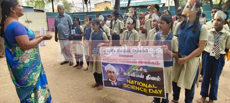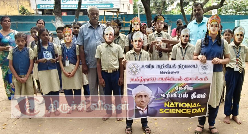 தேசிய அறிவியல் தொழில்நுட்ப பரிமாற்றக் குழு 1986-ம் ஆண்டு இந்தத் தினத்தை அறிவித்தது. அறிவியலைப் பரப்புவதற்காக நாட்டில் சிறப்பாக செயல்படும் நிறுவனங்கள், தனிநபர்களுக்கு அறிவியல் பரப்புதலுக்கான தேசிய விருதும் இந்த நாளில் வழங்கப்பட்டு வருகிறது. ஒவ்வொரு வீட்டிலும் எந்த மாதிரியான அறிவியல் உபகரணங்கள் பயன்பாட்டில் உள்ளது என்பதை மாணவர்கள் கண்டறிந்து அதனை ஆசிரியர் உடன் விவாதிக்கும்படி கேட்டுக் கொண்டார். பள்ளியில் மாணவர்களுடைய அறிவியல் படைப்புகள் வைக்கப்பட்டு அதைப்பற்றி மாணவர்கள் விவாதித்தனர். பள்ளி தலைமை ஆசிரியர் ஜீவானந்தன் அவர்கள் அறிவியல் பேசுகையில்சர் சி.வி. ராமனின் முழுப் பெயர் சந்திரசேகர வெங்கட்ராமன். திருச்சிக்கு அருகே உள்ள திருவானைக்காவலில் 1888-ம் ஆண்டு நவம்பர் 7-ம் தேதி பிறந்தார். இளம் வயதிலேயே அறிவுக்கூர்மையுடன் இருந்தார் ராமன். அவருக்கு 11 வயது ஆனபோது பள்ளிப் படிப்பை முடித்தார். 15-வது வயதில் சென்னை மாநிலக் கல்லூரியல் இயற்பியல் மற்றும் பி.ஏ. ஹானர்ஸ் படிப்பை முடித்து மாநிலத்தில் முதல் மாணவராக வெற்றி பெற்றார். தொடர்ந்து அதே கல்லூரியில் 19 வயது முடியும் முன்பே முதுகலைப் பட்டத்தையும் முடித்து மாநிலத்தில் முதல் மாணவராகத் தேர்ச்சி பெற்றார்.