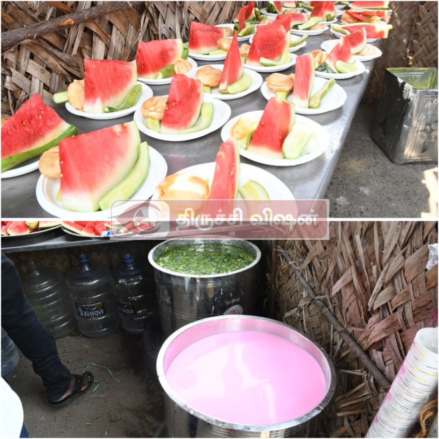 நீர் மோர் பந்தலை தெற்கு மாவட்ட கழக செயலாளர் – மாண்புமிகு அமைச்சர் அன்பில் மகேஸ் பொய்யாமொழி திறந்து வைத்து பொதுமக்களுக்கு மோர் தர்பூசணி இளநீர் வெள்ளரிப்பிஞ்சு மற்றும் குளிர்பானங்கள் ஆகியவைகளை வழங்கினார்.