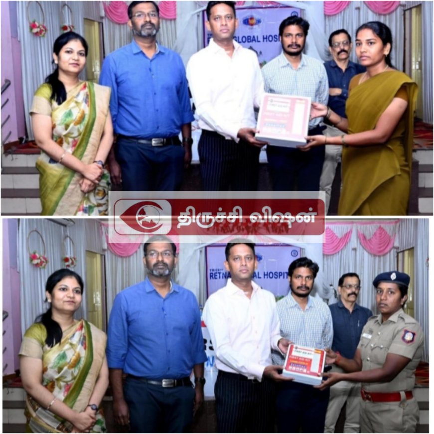 திருச்சிராப்பள்ளி மாவட்டத்திலுள்ள காவல் நிலையங்களுக்கு நீயூரோஒன் மருத்துவமனை மற்றும் ரத்னா குளோபல்ஸ் மருத்துவமனை இணைந்து முதல் உதவி பெட்டி வழங்கும் விழா இன்று (09.4.2025) திருச்சிராப்பள்ளி மாவட்ட ஆயுதப்படை வளாகத்தில் உள்ள திருமாங்கல்யம் மஹாலில் நடைபெற்றது.