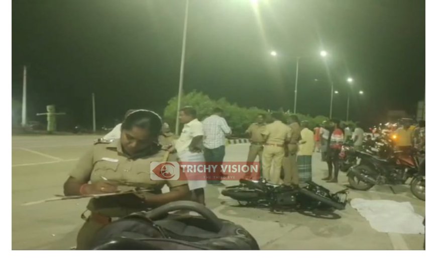 திருச்சி மாவட்டம் லால்குடி அருகே கல்லக்குடி மால்வாய் ரோட்டில் வசிப்பவர் தர்மராஜ் (73). இவர் கிராம நிர்வாக அலுவலராக பணியாற்றி ஓய்வு பெற்றவர் ஆவார். இவர் இன்று புதிதாக வாங்கிய தனது இருசக்கர வாகனத்தை எடுத்துக் கொண்டு திருச்சி – சிதம்பரம் தேசிய நெடுஞ்சாலையில் கல்லக்குடி சுங்கச்சாவடி அருகில் அமைந்துள்ள டீக்கடையில் டீ குடிப்பதற்காக வந்துள்ளார்.