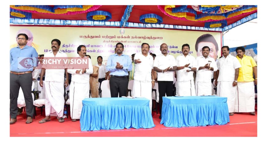 திருச்சி மாவட்டத்தில் பல்வேறு பகுதிகளில் சுகாதார உள்கட்டமைப்பு வசதிகளை நகராட்சி நிர்வாகத் துறை அமைச்சர் கே.என்.நேரு மற்றும் சுகாதாரத் துறை அமைச்சர் மா.சுப்பிரமணியன் ஆகியோர் திறந்து வைத்தனர்.