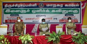மகாத்மா காந்தி பிறந்தநாளை முன்னிட்டு, திருச்சி மாநகரில் இளைஞர்கள் போதை பழக்கத்திற்கு அடிமையாகுவதை தவிர்க்கும் பொருட்டு திருச்சி மாநகர காவல் ஆணையர் “இளைஞர் ஒளிர்க் கவினுலகு” என்னும் புதிய திட்டம் இன்று திருச்சி தில்லை நகர் சாஸ்திரி ரோட்டில் திருவள்ளுவர் திருமண மண்டபத்தில் அறிமுகப்படுத்தும் நிகழ்ச்சி நடைபெற்றது.