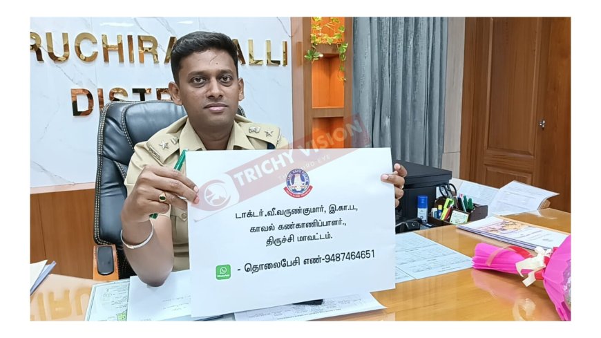 திருச்சி மாவட்ட மக்கள் தங்களது பிரச்சினைகள் குறித்து உடனுக்குடன் தகவல் தெரிவிக்க, 9487464651 என்ற பிரத்தியேக மொபைல் எண்ணை தொடர்பு கொள்ளலாம். வாட்ஸ் அப் மூலமும் தங்களது தகவல்களை தெரிவிக்கலாம் என்று திருச்சி மாவட்ட காவல்துறை கண்காணிப்பாளர் வருண்குமார் தெரிவித்துள்ளார்.