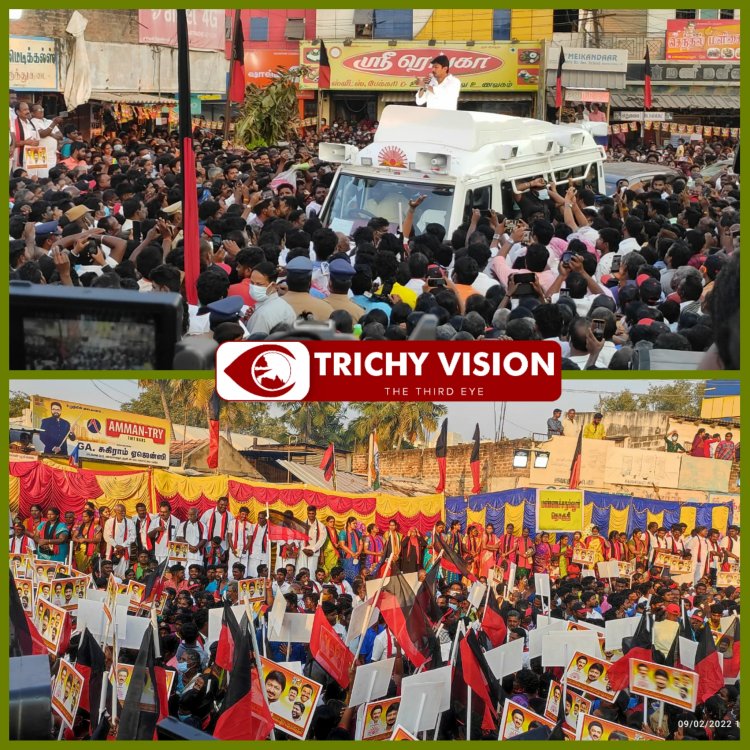 திருச்சி, உறையூர் பகுதியில், எம்.எல்.ஏ.,வும் தி.மு.க., இளைஞரணி செயலாருமான உதயநிதி, தி.மு.க., கூட்டணி கட்சி வேட்பாளர்களை ஆதரித்து பிரச்சாரம் செய்தார்.
