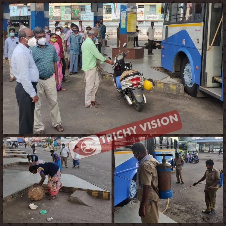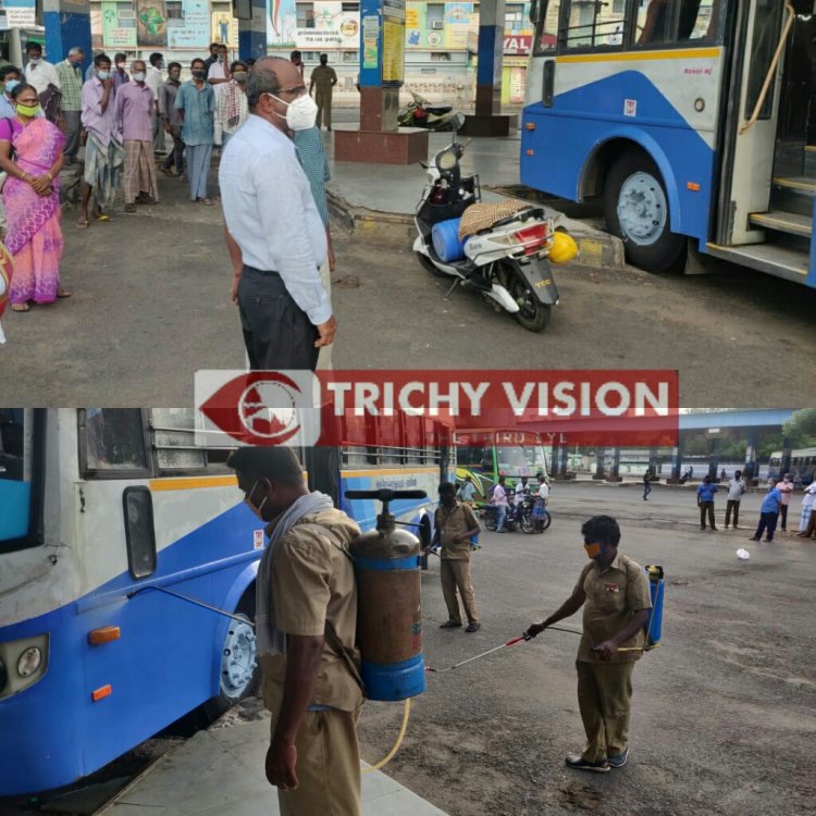 தமிழக அரசு இன்றும், நாளையும் ஊரடங்கு தளர்வு அறிவிக்கப்பட்டதை அடுத்து திருச்சி மத்திய பேருந்து நிலையத்தில் வெளியூர்களுக்கு பேருந்துகள் இயக்கப்பட்டது. அதில் 18 வெளியூர் பேருந்துகளும், 16 நகரப் பேருந்துகளும் இயக்கத் தயாராக இருந்தது . இதனை மாவட்ட ஆட்சியர் சிவராசு நேரில் வந்து பார்வையிட்டார்.