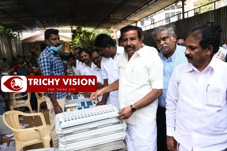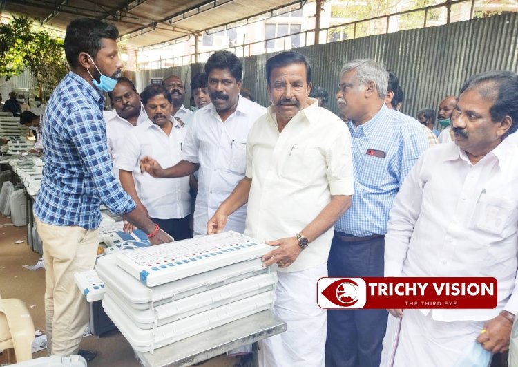 திருச்சியில் உள்ள மாவட்ட ஆட்சியர் அலுவலகத்தில் தேர்தல் வாக்கு சாவடி எந்திரங்களை சரிபார்க்கும் பணியை கழக முதன்மைச் செயலாளர் கே. என்.நேரு நேரில் பார்வையிட்டார் .