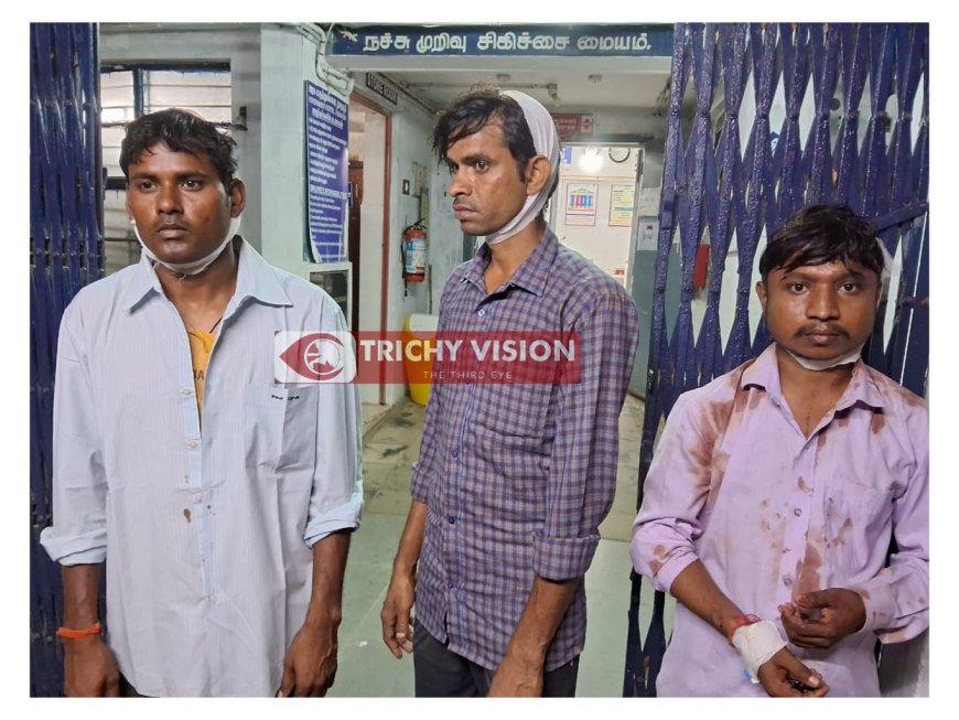 இதில் உத்தரபிரதேசத்தை சேர்ந்த சுனில் ( 36 ), நரேஷ் ( 32 ), ராகுல் ( 23 ) ஆகியோருக்கு தலையில் பலத்த காயம் ஏற்பட்டுள்ளது. மீதமுள்ள வர்துன்னா ( 24 ), ராஜேஷ் ( 29 ), மலேஷ் ( 18 ) ஆகிய 6 பேரும் துறையூர் அரசு மருத்துவமனையில் அனுமதிக்கப்பட்டுள்ளனர். வடமாநிலத்தை சேர்ந்த ஏழை கூலி தொழிலாளர்கள் மீதான தாக்குதல் குறித்து திருச்சி ஜம்புனாதபுரம் காவல்நிலையத்தில் வழக்கு பதிவு செய்யப்பட்டுள்ளது.