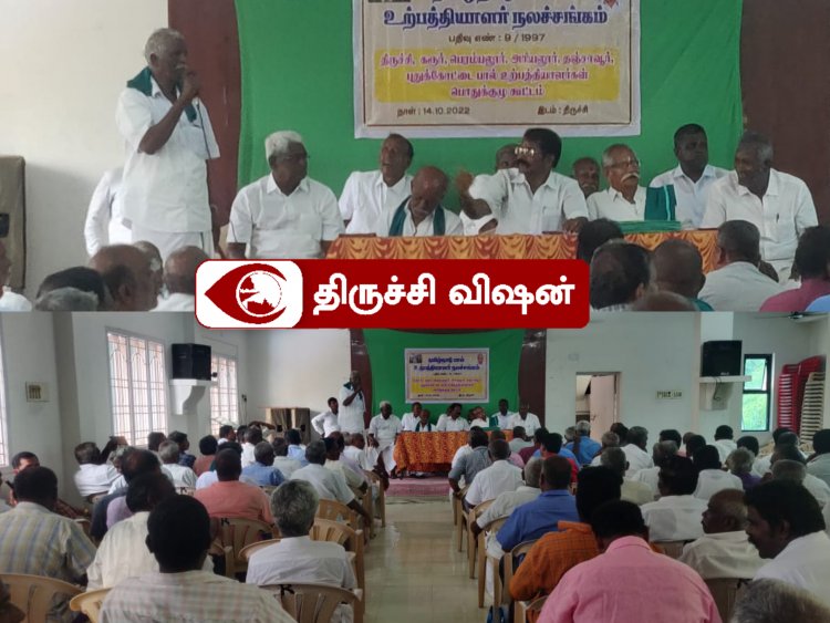 திருச்சியில் தமிழ்நாடு பால் உற்பத்தியாளர்கள் நல சங்கத்தின் திருச்சி மண்டல பொதுக்குழு கூட்டம் இன்று பால் உற்பத்தியாளர்கள் நல சங்கத்தின் மாநிலத் தலைவர் ராஜேந்திரன் தலைமையில் திருச்சி சத்திரம் பேருந்து நிலையம் அருகே உள்ள தனியார் திருமண மண்டபத்தில் நடைபெற்றது. இக்கூட்டத்தில் அரியலூர், பெரம்பலூர், புதுக்கோட்டை, கரூர் உள்ளிட்ட 6 – மாவட்டங்களில் இருந்து நிர்வாகிகள் பங்கேற்றனர்.