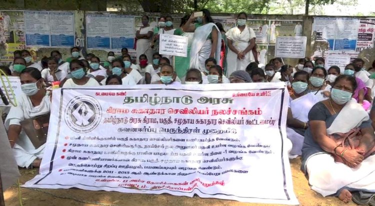 கொரோனா முன் களப்பணியாளர்களான கிராம சுகாதார செவிலியர்கள் பல்வேறு கோரிக்கைகளை வலியுறுத்தி திருச்சி மாவட்ட ஆட்சியர் அலுவலகம் அருகே ஆர்ப்பாட்டத்தில் ஈடுபட்டனர்.