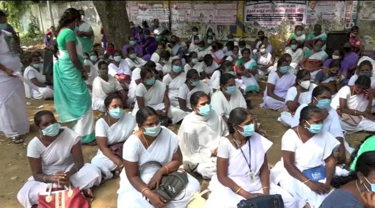 வரவிருக்கும் மினி கிளினிக்குகளில் பகுதி சுகாதார செவிலியர்களை பணியமர்த்த வேண்டும் என்றும்,சமுதாய சுகாதார செவிலியர்களுக்கு தாய் சேய் நல அலுவலர்களாக பதவி உயர்வு வழங்க வேண்டும்,கிராம சுகாதார செவிலியர்களுக்கு பாலின பாகுபாடின்றி பதவி உயர்வு வழங்க வேண்டும், 2011 ஆம் ஆண்டு முதல் 2015 ஆம் ஆண்டு வரை கிராம சுகாதார நிலையங்களில் குழந்தை பெற்ற பயனாளிகளுக்கு வழங்கப்பட வேண்டிய மகப்பேறு பயன்களை உடனடியாக வழங்க வேண்டும், அரசு தலைமை மருத்துவமனைகளில் பணியாற்றும் செவிலியர்களை போலவே கிராம,பகுதி,சமுதாய சுகாதார செவிலியர்களும் கொரோனா முன் கள பணியாளர்களாக பணியாற்றுகிறார்கள் ஆனால் அரசு மருத்துவமனை செவிலியர்களுக்கு வழங்கப்படுவது போல எந்த வித சிறப்பு ஊதியமும் கிராம சுகாதார செவிலியர்களுக்கு வழங்கப்படுவதில்லை அவர்களுக்கும் கொரோனா காலத்தில் வழங்கப்பட வேண்டிய சிறப்பு ஊதியம்,பயணப்படி ஆகியவற்றை முறையாக வழங்க வேண்டும் உள்ளிட்ட கோரிக்கைகளை வலியுறுத்தி தமிழ்நாடு கிராம சுகாதார செவிலியர் நல சங்கத்தினர் திருச்சி மாவட்ட ஆட்சியர் அலுவலகம் அருகே ஆர்ப்பாட்டத்தில் ஈடுபட்டனர்.