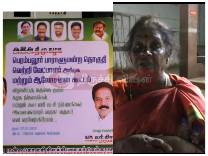 அதன் ஒரு பகுதியாக திருச்சி மாவட்டம் லால்குடி தனியார் திருமண மண்டபத்தில் அதிமுக பெரம்பலூர் பாராளுமன்ற வேட்பாளர் சந்திரமோகனை அறிமுகம் செய்து வைக்கும் கூட்டம் நடைபெற்றது. இந்தக் கூட்டத்தில் முன்னாள் அமைச்சர் சிவபதி, முன்னாள் எம்பி குமார் உள்ளிட்ட கட்சி நிர்வாகிகள், தொண்டர்கள் என ஏராளமான கலந்து கொண்டனர். இக்கூட்டத்திற்கு கிராமத்தில் உள்ள பல பெண்களை 200 ரூபாய் கொடுத்து அழைத்து வந்தனர்.