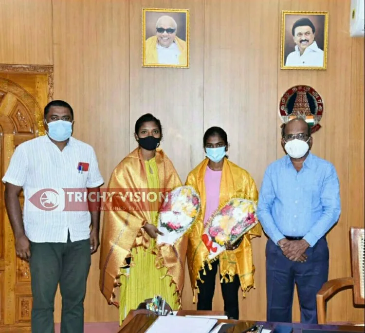 நமது தேசத்திற்கும், தமிழ்நாட்டிற்கும், திருச்சிராப்பள்ளி மாவட்டத்திற்கும் பெருமை சேர்த்துள்ளார்கள். இவர்களை பாராட்டி திருச்சிராப்பள்ளி மாவட்ட ஆட்சித்தலைவர் சு.சிவராசு இன்று (10.08.2021) நேரில் வாழ்த்துக்களை