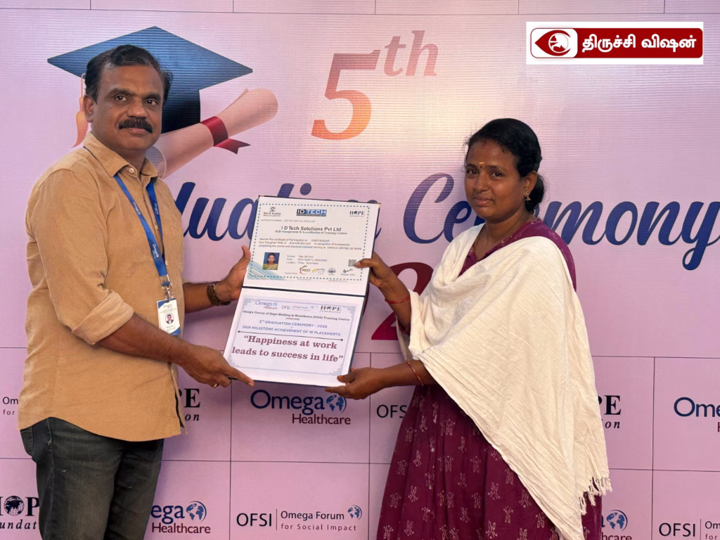 திருச்சியில் 541 இளைஞர்களுக்கு ஒமேகா ஹெல்த்கேர் வேலைவாய்ப்பு பயிற்சி சான்றிதழ் .