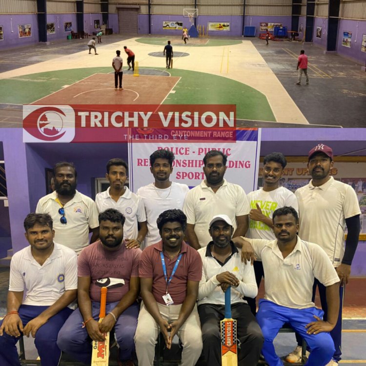 இதில் கண்டோன்மெண்ட் காவல் நிலைய உதவி ஆணையர் அணி மற்றும் சாரநாதன் கல்லூரி, தேசிய கல்லூரி மற்றும் Omega, VDart ஆகிய பன்னாட்டு தனியார் நிறுவனங்களின் அணிகள் கலந்து கொண்டன. இன்று நடைபெற்ற உள் அரங்கு கிரிக்கெட் போட்டியில் கண்டோன்மெண்ட் காவல் நிலைய உதவி ஆணையர் அஜய் தங்கம் தலைமையில் நடைபெற்றது.