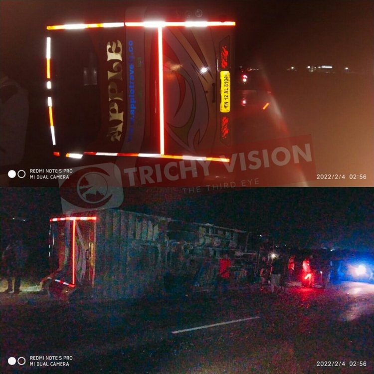 திருச்சியில் ஆம்னி பேருந்து கவிழ்ந்து விபத்து – ஒருவர் உயிரிழப்பு