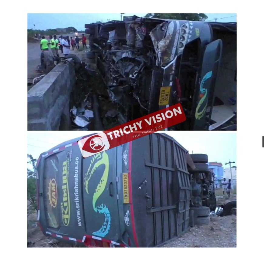 திருச்சி அருகே தனியார் பேருந்து கவிழ்ந்து விபத்து – 8 பேர் காயம்