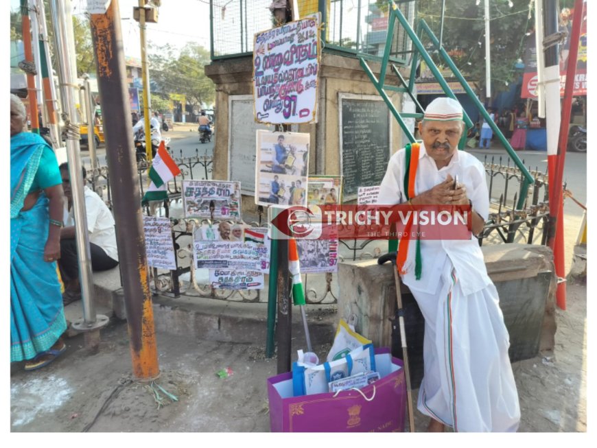 குடியரசு தினத்தன்று காமராஜர் சிலை முன்பு தியாகி அமர்ந்து போராட்டம்.