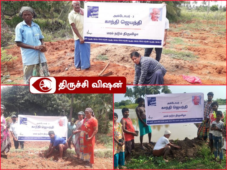 மகாத்மா காந்தியின் பிறந்த நாளை முன்னிட்டு காவேரி கூக்குரல் இயக்கம் சார்பில் திருச்சியில் 1.5 லட்சம் மரக்கன்றுகளை விவசாயிகள் தங்கள் நிலங்களில் நடவு செய்துள்ளனர்.