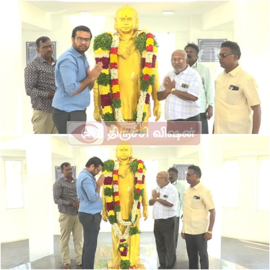 திருச்சிராப்பள்ளி மத்திய பேருந்து நிலையம் அருகிலுள்ள ஏழிசை மன்னர் எம்.கே. தியாகராஜ பாகவதர் மணி மண்டபத்தில் நிறுவப்பட்டுள்ள ஏழிசை மன்னர் எம். கே. தியாகராஜ பாகவதர் திருவுருவ சிலைக்கு அவரது பிறந்த நாளினை முன்னிட்டு இன்று (01.03.2025) மாநகராட்சி ஆணையர் திரு.வே. சரவணன் இ.ஆ.ப., அவர்கள் மற்றும் திருச்சி மாவட்ட ஆட்சியர் திரு மா.பிரதீப் குமார்