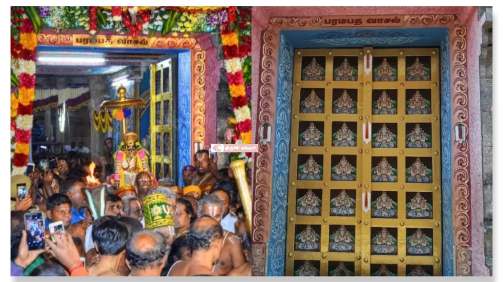 ஸ்ரீ நம்பெருமாள் வைகுந்த ஏகாதசி பெருவிழாவை முன்னிட்டு நாளை ஐப்பசி மாதம் 14 ஆம் தேதி 31.10.2025 வெள்ளிக்கிழமை தசமி திதி அவிட்டம் நட்சத்திரம் தனுர் லக்னத்தில் காலை 09:35 மணி முதல் 10:30 மணிக்குள் வைகுந்த ஏகாதசி திருநாள் (2025-2026)