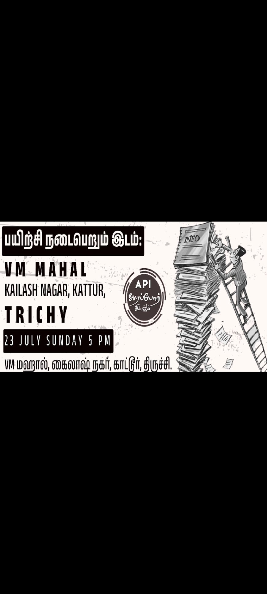 அறப்போர் இயக்கத்தின் சார்பில் தகவல் அறியும் உரிமைச் சட்ட பயிற்சி வகுப்பு வரும் ஞாயிற்றுக்கிழமை (23.07.2203) மாலை 5 மணிக்கு நடைபெற உள்ளது. இதுசமயம் பொதுமக்களும், சட்ட ஆர்வலர்களும், தன்னார்வலர்களும், இளைஞர்களும் இந்த வாய்ப்பினை பயன்படுத்தி தங்களுக்கு உண்டான தகவல் அறியும் ஊரிமை சட்ட விழிப்புணர்வு  பெறலாம்.