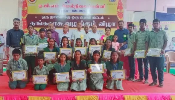 திருச்சி துறையூா் அருகேயுள்ள எரகுடி ஏஜிஎம் மேல்நிலைப் பள்ளியில், நிகழாண்டில் பிறருக்கு உதவி செய்த 38 மாணவ, மாணவிகளுக்கு ஞாயிற்றுக்கிழமை தங்க நாணயம் பரிசாக வழங்கப்பட்டுள்ளது.