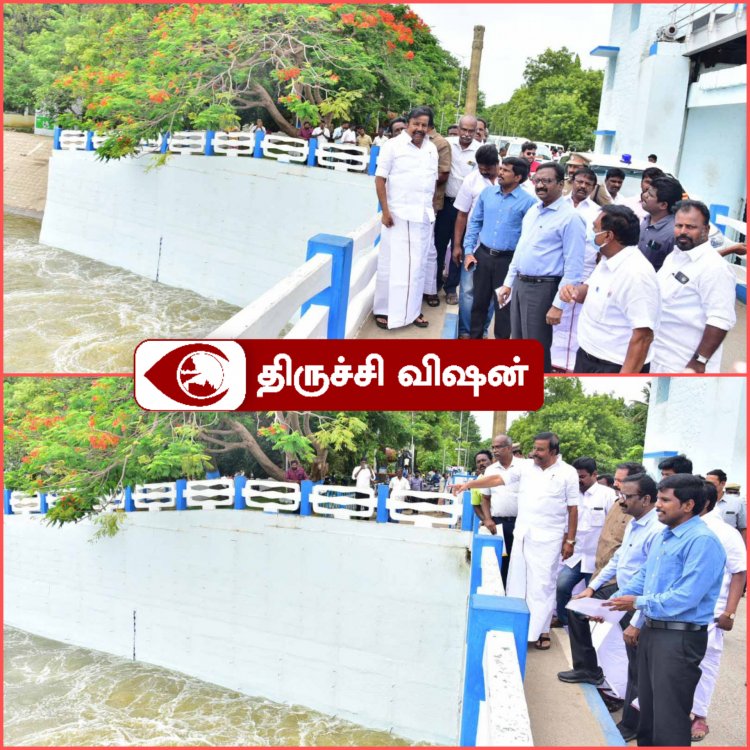 ஸ்ரீரங்கம் மூலத்தோப்பு அகிலாண்டேஸ்வரி நகர் பகுதி கரை பலப்படுத்தப்பட்டுள்ளது. காவிரி நீர் ததும்பி செல்கிறது பயம் வேண்டாம் என நகராட்சி நிர்வாகத்துறை அமைச்சர் கே என் நேரு திருச்சி முக்கொம்பு கொள்ளிடம் கதவணைகளை பார்வையிட்டு செய்தியாளர்களிரிடம் தெரிவித்தார்.