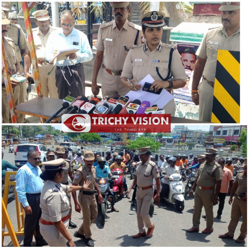 இந்நிலையில் அந்த பாலத்தில் இரண்டு வழித்தடங்களில் மட்டும் இரு வழிப்பாதையாக மாற்ற ஆய்வு செய்யப்பட்டு வருகிறது. இந்நிலையில் திருச்சி மாநகர காவல் துறை ஆணையர் சத்ய பிரியா அந்த பாலத்தை ஆய்வு செய்தார். மேலும் மத்திய பேருந்து நிலையத்திலிருந்து இரு வழிப்பாதைக்கான முன்னோட்டம் இன்று விடப்பட்டதையும் பார்வையிட்டார்.