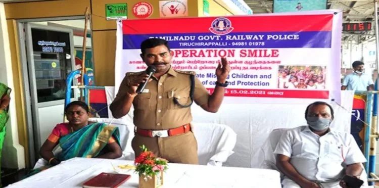 திருச்சி ரயில்வே ஜங்சனில் ‘ஆப்ரேசன் ஸ்மைல்’ என்ற புதிய திட்டத்தின் துவக்க விழா ரயில்வே காவல் கண்காணிப்பாளர் செந்தில் குமார் தலைமையில் நடைபெற்றது. காணாமல் போன மற்றும் பெற்றோரை பிரிந்துள்ள குழந்தைகளை கண்டுபிடித்து அவர்களின் பெற்றோரிடம் ஒப்படைக்கும் வகையில் இந்த சிறப்பு நடவடிக்கை துவக்கப்படுள்ளது.
