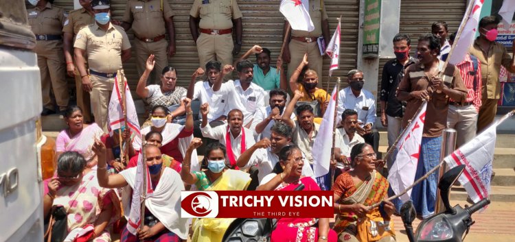 இதனிடையே ஏற்கனவே போக்குவரத்து நெரிசல் அதிகம் மிகுந்த பகுதியாக உள்ளதும், பெண்களுக்கான கடைகள் மற்றும் வணிகவளாகங்கள் நிறைந் பகுதியில், பேருந்து நிறுத்தத்திற்கு அருகிலேயே புதிதாக திறக்கப்படும் கூடுதல் மதுபானக்கடையினால் பெண்கள் மற்றும் பொதுமக்கள் அவதிக்குள்ளாகும் நிலை ஏற்படும் என்றும் எனவே மதுபானக்கடையினை திறக்கும் அரசின் முடிவைக் கைவிட வலியுறுத்தி திமுக கூட்டணி கட்சியான சிபிஎம் கட்சியின் திருச்சி மாநகராட்சி கவுன்சிலர் சுரேஷ் தலைமையில் ஜனநாயக மாதர் சங்கம் மற்றும் இந்திய ஜனநாயக வாலிபர் சங்கம் இணைந்து புதிதாக திறக்கவுள்ள மதுபானக்கடையினை முற்றுகையிட்டு, கடையின் வாசலில் அமர்ந்து முற்றுகை போராட்டத்தில் ஈடுபட்டனர்.