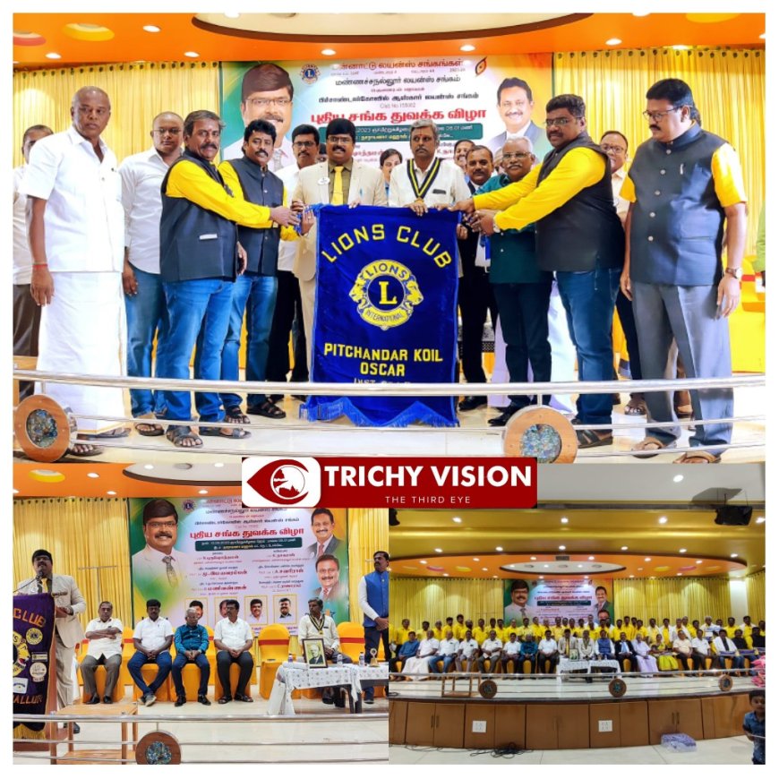 திருச்சி மாவட்டம், நெ.1 டோல்கேட் அருகே உள்ள தனியார் திருமண மண்டபத்தில் பிச்சாண்டார்கோவில் ஆஸ்கார் லயன்ஸ் சங்கம் என்ற புதிய சங்க துவக்க விழா நடைபெற்றது. விழாவிற்கு மண்ணச்சநல்லூர் லயன்ஸ் சங்க தலைவர் புருஷோத்தமன் தலைமையில் நடைபெற்ற இந்த விழாவில் மண்ணச்சநல்லூர் லயன்ஸ் சங்க சாசனத்தலைவர் நாகராஜ் வரவேற்று பேசினார்.