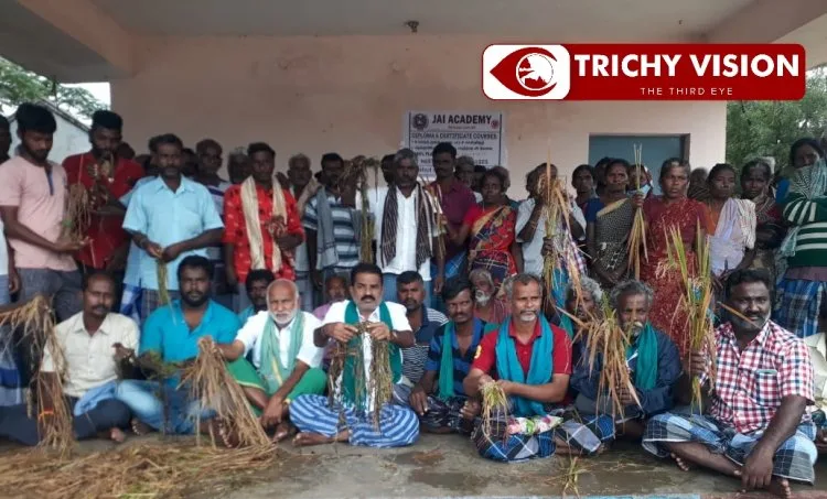 திருச்சி மாவட்டம் மணிகண்டம் ஊராட்சி ஒன்றியம் ஓலையூர் கிராமத்தில் மழையின் காரணமாக விளைந்த பயிர்கள் நீரில் மூழ்கி சேதம் அடைந்ததை இதுவரை அதிகாரிகள் யாரும் வந்து பார்க்காத காரணத்தினால் ஓலையூர் விவசாயிகள் ஆர்ப்பாட்டத்தில் ஈடுபட்டனர்.