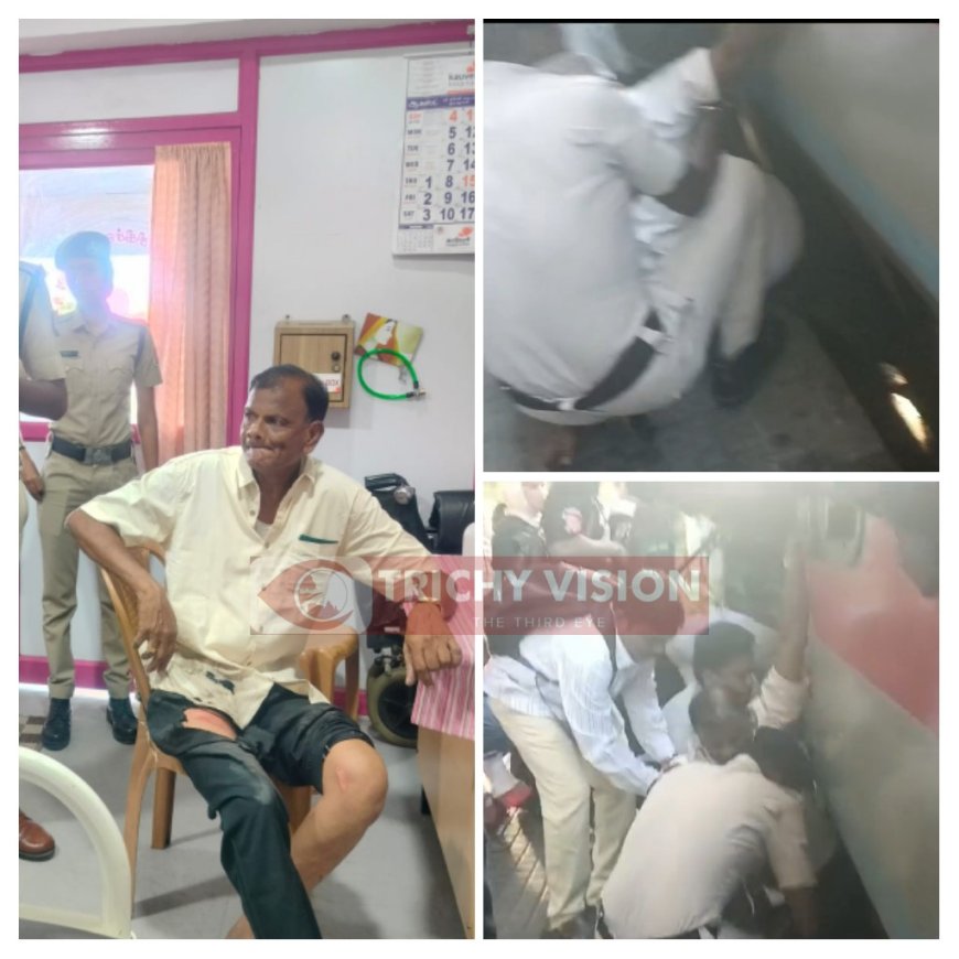 அதிர்ஷ்டவசமாக காயங்களுடன் உயிர் தப்பினர். ரயில்வே பாதுகாப்பு படை அதிகாரிகள் பயணிகள் அவரை மீட்டு மருத்துவ சிகிச்சை அனுப்பி வைத்தனர். அவர் ரயில்வே ஓய்வு பெற்ற ஊழியர் ஜெயச்சந்திரன் திருச்சி கருமண்டபம் விஸ்வாஸ் நகரை சேர்ந்தவர்.