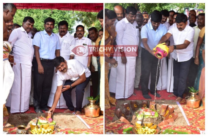 திருச்சி மாவட்டம் துறையூர் ஊராட்சி ஒன்றிய அலுவலக வளாகத்தில், மாவட்ட ஆட்சித் தலைவர் பிரதீப் குமார் தலைமையில் இன்று நடைபெற்ற விழாவில் ஒருங்கிணைந்த ஒப்படைக்கப்பட்ட வருவாய் திட்டத்தின் கீழ் ரூபாய் 5.54 கோடி மதிப்பீட்டில் புதிய ஊராட்சி ஒன்றிய அலுவலக கட்டிடம் கட்டுவதற்காக பெரம்பலூர் பாராளுமன்ற உறுப்பினர் அருண் நேரு பூமி பூஜை செய்து அடிக்கல் நாட்டி திட்ட பணிகளை தொடங்கி வைத்தார்.