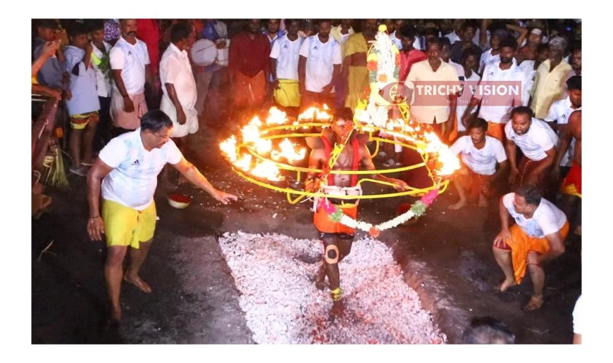 திருச்சி மாவட்டம் திருவெறும்பூர் அருகே உள்ள நவல்பட்டு பாரதியார் நகரில் ஸ்ரீ முத்துமாரியம்மன் கோவில் உள்ளது. இந்தக் கோவிலில் ஆண்டுதோறும் பங்குனி மாதத்தில் தீமிதி திருவிழா நடைபெறுவது வழக்கம். அதன்படி 24ம் ஆண்டு தீமிதி திருவிழாவானது கடந்த 29ஆம் தேதி காப்பு கட்டுதலுடன் தொடங்கியது.