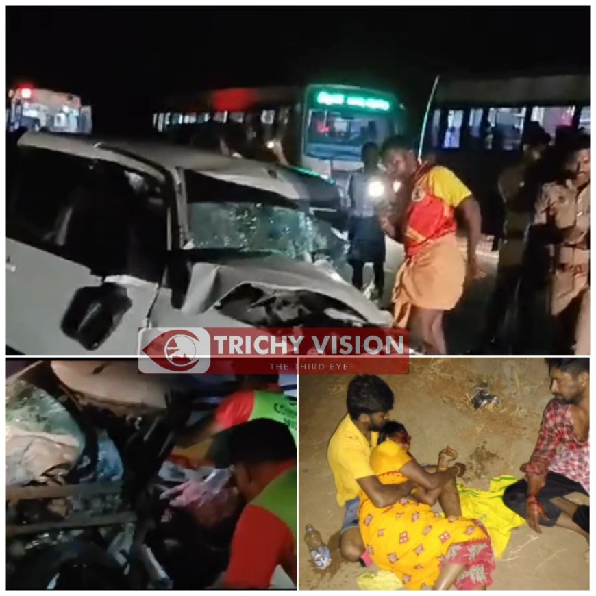 நாமக்கல் மாவட்டம், அவனியாபுரம் பகுதியை சேர்ந்த சரசு (52) மற்றும் அவரது குடும்பத்தினர் 4 பேர் காரில் நேற்று இரவு சமயபுரம் மாரியம்மன் கோவிலுக்கு செல்வதற்காக காரில் புறப்பட்டு வந்துள்ளனர். அப்போது மணமேடு கொண்டாம்முட்டி பாலம் அருகே திருச்சியில் இருந்து சேலம் நோக்கி சென்ற பார்சல் சர்வீஸ் வேனும், காரும் எதிர்பாராத விதமாக நேருக்கு நேர் மோதி விபத்துக்குள்ளானது.