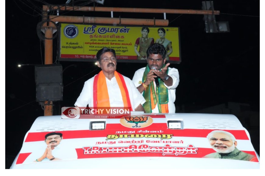 பெரம்பலூர் தொகுதியில் போட்டியிடும் பாரிவேந்தருக்கு பாஜக மாநிலத்தலைவர் அண்ணாமலை ஆதரவு திரட்டி பிரச்சாரம் செய்தார். அப்போது அவர் பேசுகையில்…. பாரிவேந்தரின் கனவான பெரம்பலூர் ரயில் திட்டம் கண்டிப்பாக கொண்டு வரப்படும். அதற்கான ஆரம்ப கட்டப்பணிகள் நடந்து கொண்டிருக்கிறது. நேர்மையால் உண்மையால் மக்கள் சிந்தனையால் உழைத்து முன்னுக்கு வந்தவர் பாரிவேநேதர்.