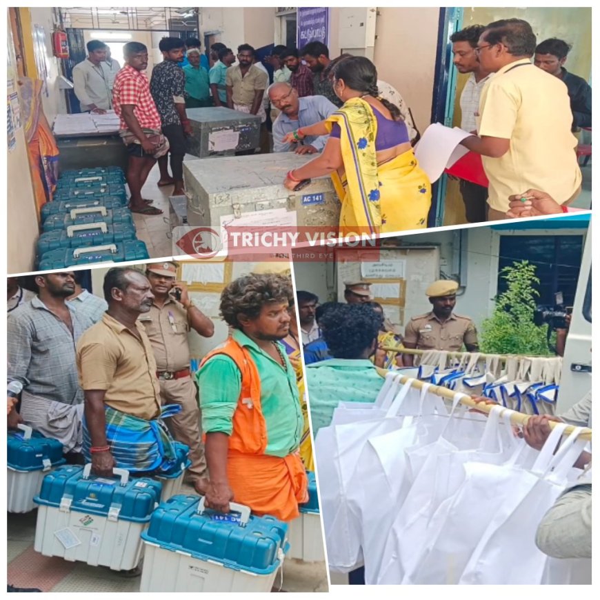 இன்று அனைத்து வாக்குச்சாவடி மையங்களுக்கும் மின்னணுவாக்கு இயந்திரங்கள் அந்தந்த தொகுதிக்குட்பட்ட தாசில்தார் அலுவலகத்தில் இருந்து அனுப்பி வைக்கப்பட்டது. இன்று இரவுக்குள் அனைத்து வாக்குச்சாவடி மையங்களுக்கும் இந்த மின்னணுவாக்கு பதிவு இயந்திரங்கள் அனுப்பி வைக்கப்படும். குறிப்பாக 2547 வாக்கு சாவடி மையம் உள்ளது. 3053 மிண்ணனு வாக்குபதிவு இயந்திரம், 3053 கட்டுப்பாட்டு கருவிகள், 3307 விவிபேட் பயன்படுத்தப்பட உள்ளது.