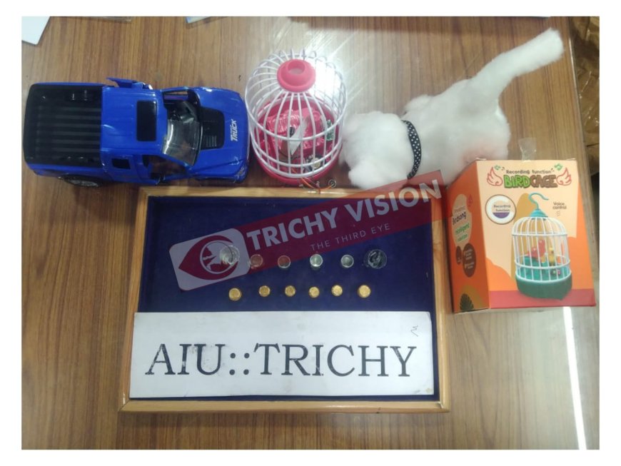 அப்பொழுது ஒரு பயணி எடுத்து வந்த விளையாட்டு பொருட்களான கலர் கிளிக்கூண்டு நாய் பொம்மைகளில் தங்கம் கடத்தி வரப்பட்டது தெரிய வந்தது. தொடர்ந்து அவருடன் விசாரணை நடத்தி விளையாட்டு பொருட்களில் கடத்தி வந்த தங்கத்தை பறிமுதல் செய்தனர்.