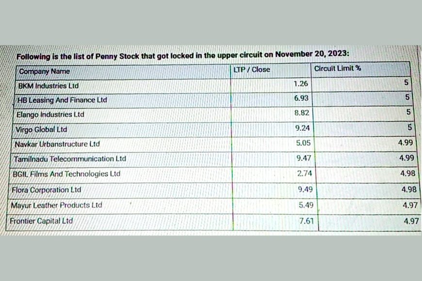 நவம்பர் 20ம்தேதி பின்னியெடுத்த பென்னி ஸ்டாக்குகள் ! அப்பர் சர்க்யூட்டில் வர்த்தகம்!!